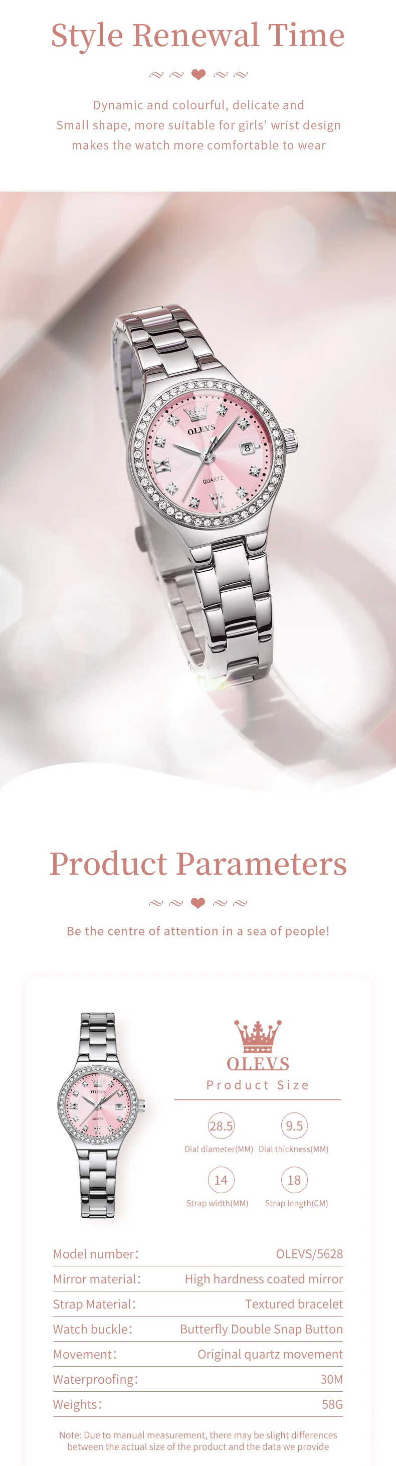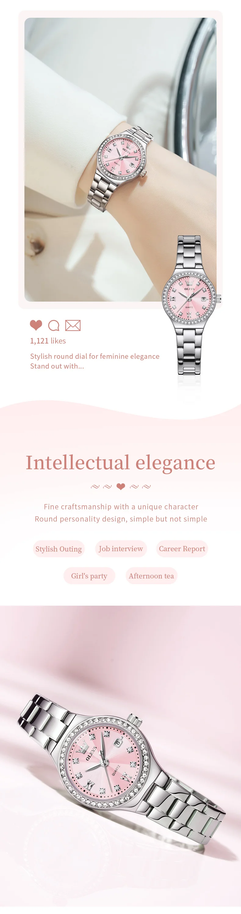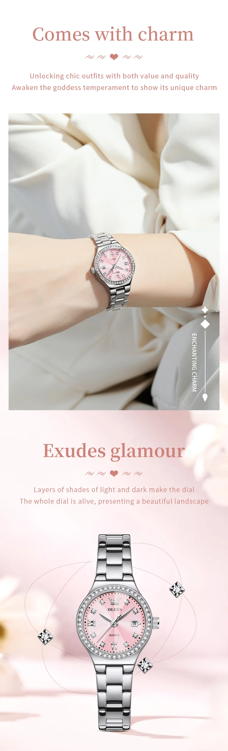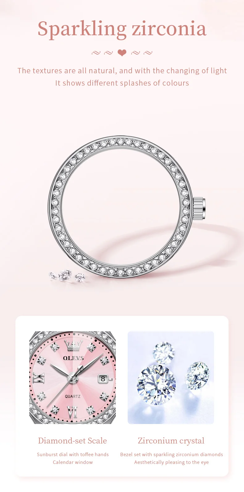 Realza tu estilo con este reloj OLEVS para mujer, una combinación perfecta de elegancia y funcionalidad. Su diseño moderno con detalles tipo diamante aporta un toque sofisticado, ideal para complementar tanto outfits casuales como formales.