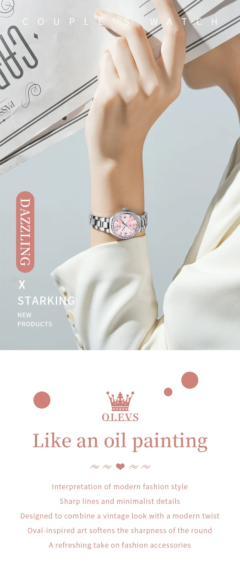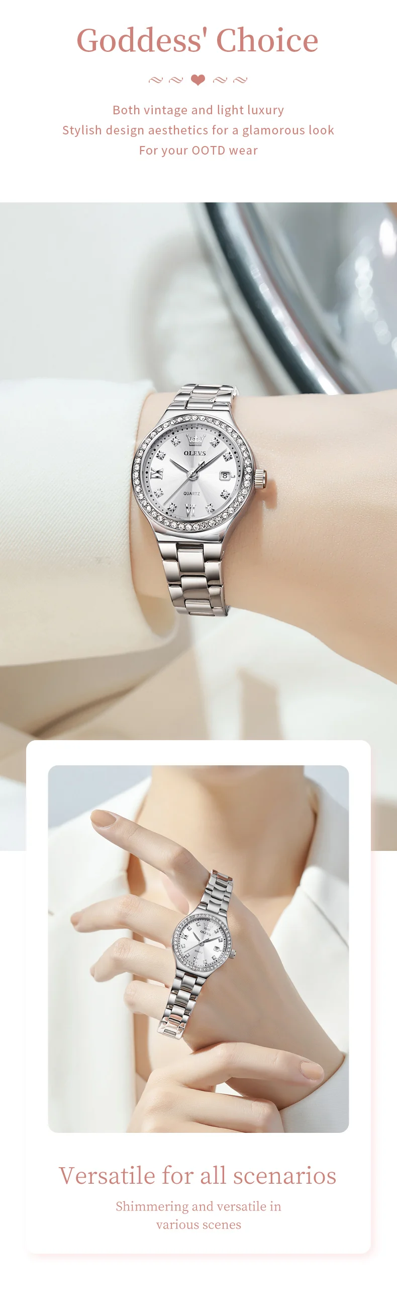 Reloj OLEVS Mujer Elegante con Acero Inoxidable y Detalles Brillantes
